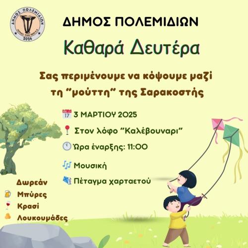 ΚΑΘΑΡΑ ΔΕΥΤΕΡΑ ΣΤΟ ΔΗΜΟ ΠΟΛΕΜΙΔΙΩΝ