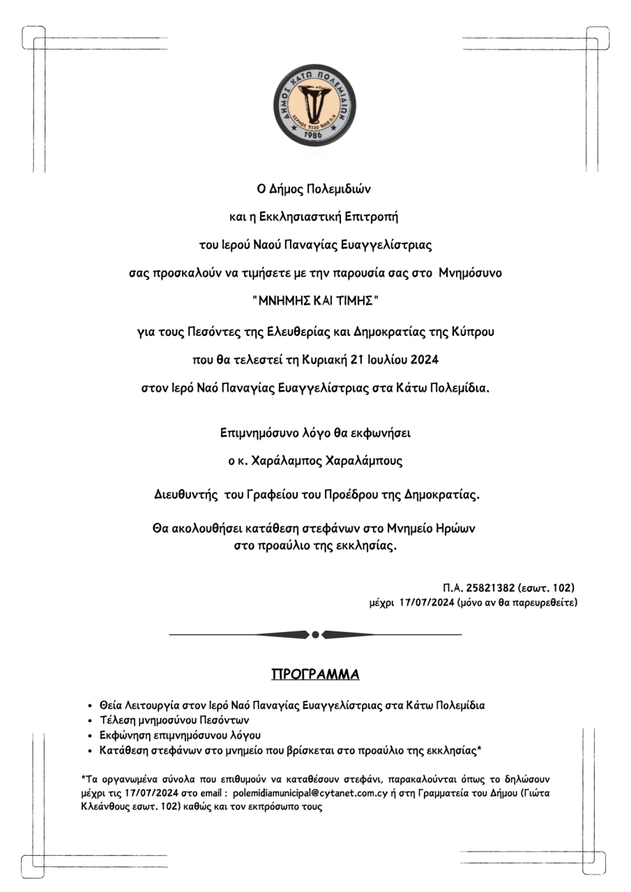 ΜΝΗΜΟΣΥΝΟ "ΜΝΗΜΗΣ ΚΑΙ ΤΙΜΗΣ" - 21/07/2024