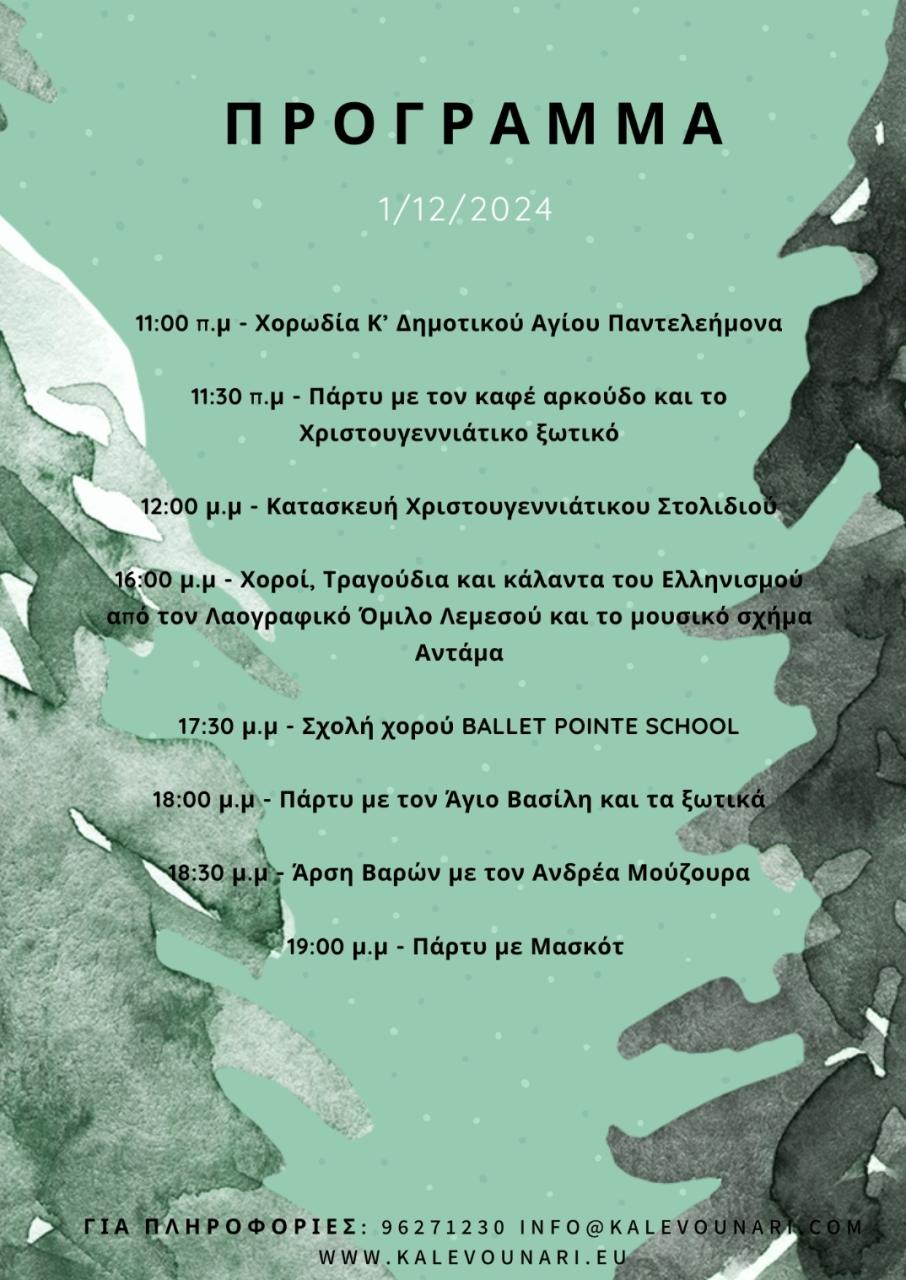 ✨ Πληροφορίες: 96 271230, info@kalevounari.com