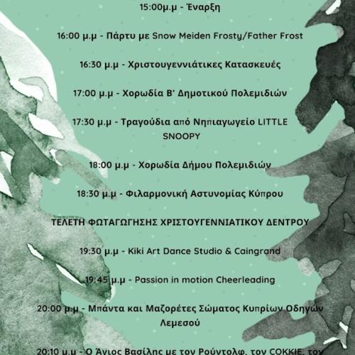 Με ζωντανή μουσική, θεατρικές παραστάσεις, τοπική κουζίνα και πολιτιστικές εκδηλώσεις, η Χριστουγεννιάτικη Παραμυθούπολη των Πολεμιδιών υπόσχεται μια αξέχαστη εορταστική εμπειρία.